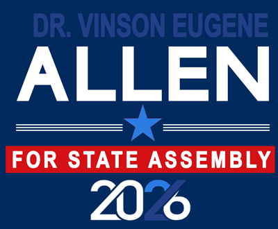 Dr. Vinson Eugene Allen, a dedicated physician, humanitarian, and small business owner, is running for State Assembly with a sincere vision focused on community care, because he sees the community as his family. His 2026 campaign is centered on advocating for job creation, affordable healthcare, housing, and safer neighborhoods, particularly for those who have been neglected by the existing system.